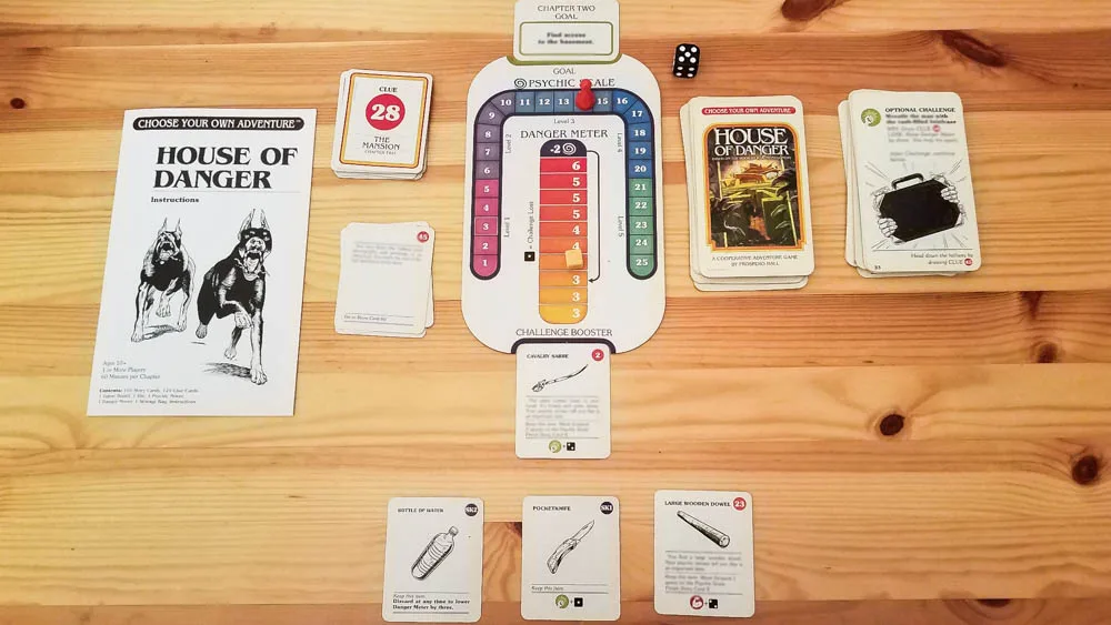 Pretty much all you have to do to set up a game of Choose Your Own Adventure: House of Danger is get the Story cards and Clue cards for your current chapter. If you gained any items during previous chapters, you get to take those with you into future chapters.