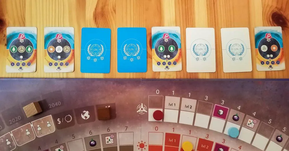 - The U.N. Goals are obviously a very important part of this game, which is why I don’t like that they’re on cards that go on the side of the board. I wish they had found a way to include spots for them on the board, maybe as tokens instead of as cards.