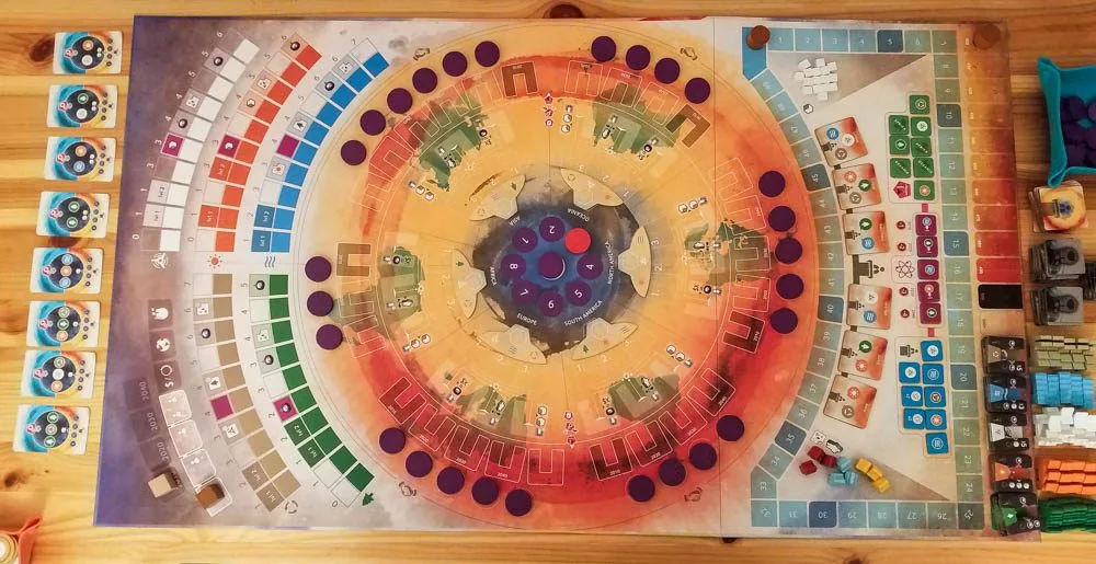 - You need a pretty large table to play CO₂: Second Chance comfortably. The board is huge and you need even more room for your player boards, your played cards, and all of the extra components.