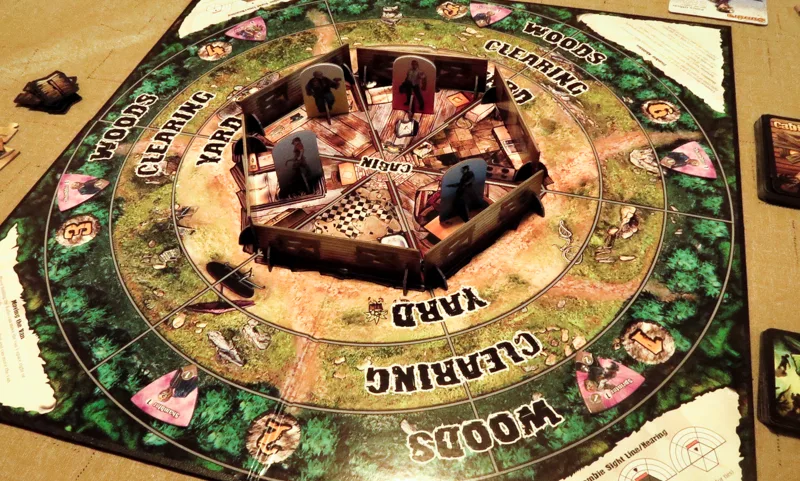 By default, every player gets two actions on their turn. These actions include moving, drawing cabin cards (guns and other items) from inside the cabin, sharing cards, and fighting zombies.
