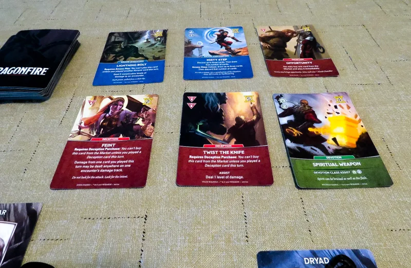 - I always love it when the cards you buy go directly into your hand. It adds an extra layer of strategy in Dragonfire since you can choose to buy a card that can help someone else that round or go for the big damage card that will help you clear out some enemies on your next turn.