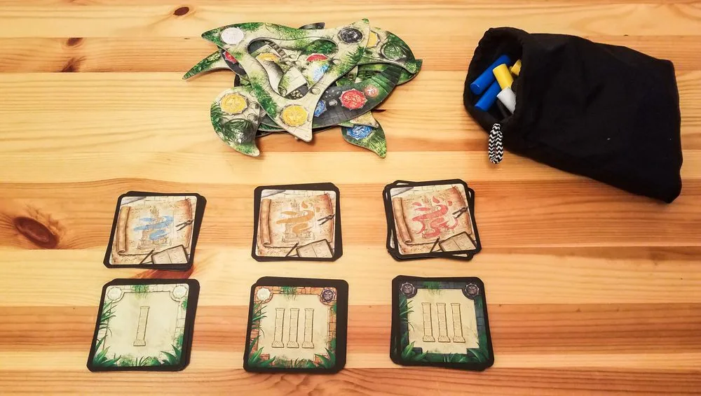 - The tiles themselves are all uniquely shaped. It’s fun trying to come up with ways to make them fit on the temple you’re creating. It would probably be a pretty boring game if all of the tiles were the same shape.