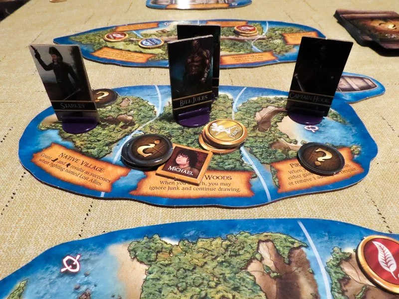 - The ship and island boards do look great, but I wish they were a bit bigger. Sometimes when you have three or more characters (and search tokens) in a spot, it looks a bit jumbled and the location’s name and ability can get covered.