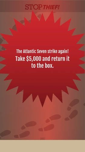 In the cooperative mode, you’ll be working together to try to catch “The Atlantic Seven,” a group of seven thieves who move together around the map. Each time someone in your group catches a thief, the other thieves will move two spaces away from that space and will make another move at the beginning of the next player’s turn. When the thieves rob a crime scene, your group will lose $5,000 (you start with $50,000). You’ll win if you’re able to catch all seven thieves before you run out of money.