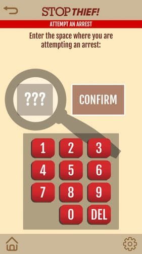 At the end of your turn you can optionally attempt to arrest a thief in your space or an adjacent space. You’ll type the space’s number into the app and you’ll find out whether you were right or wrong.