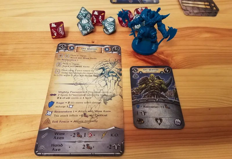 After each Hero Turn, an Encounter Card is drawn to see which, if any, enemies activate. Each of the enemies acts and reacts in different ways. They have preferred targets and they will perform different attack actions based on how far they are from their targets.